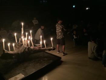 小雨が止まないので、キャンプファイヤーを諦めてキャンドルファイヤーに変更します(とっても残念です、、、)。