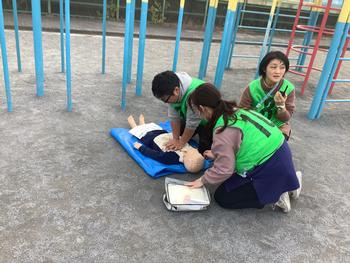 子どもたちの命を守りきるための研修、「HANAモデル」の実地訓練をしました。