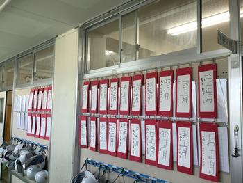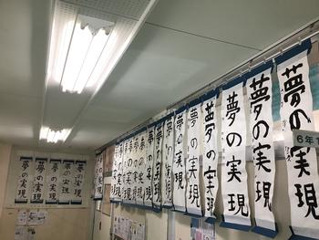 各学年の廊下に展示していますので、ぜひご覧ください。