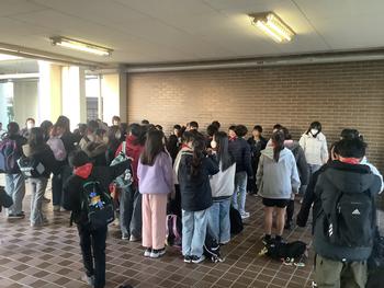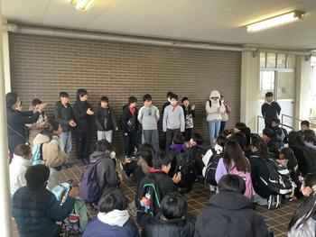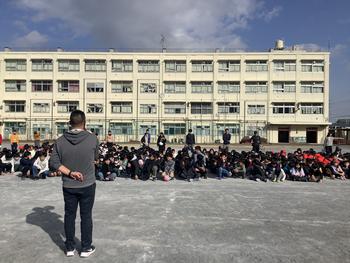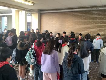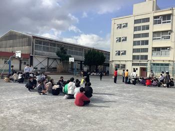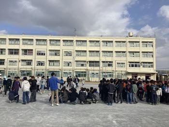 校庭にいる児童は落ち着いて中央に集まり、校舎内にいる児童も静かに放送の指示に従うことができました。