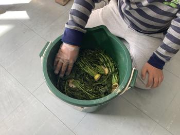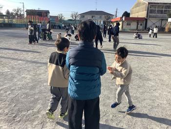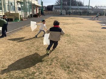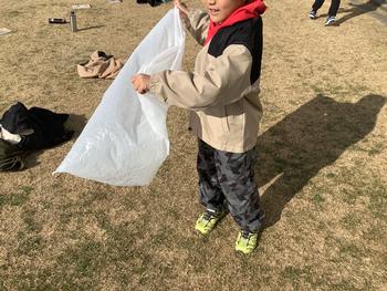1年生が、空気を集めて遊んでいます。