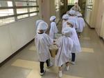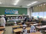 給食が始まり2週目のこの日、1年生の給食当番活動が本格的に始まりました。