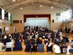 その後、各学年の代表が感想を伝えた後、4年生の指揮で全校で今月の歌である「夢見るジャンプ」を歌いました。