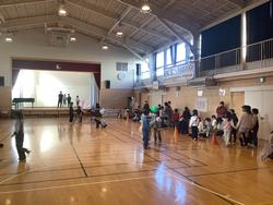 この日の朝は、体育館にて「風船ラリー」集会を開きました。
