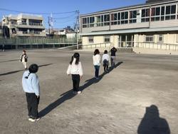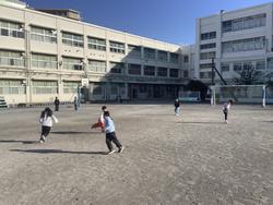 校庭で遊んでいた子どもは、中央に集まります。