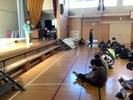 休み時間に地震が発生し、放送機器が使えない想定で取り組みました。