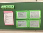校舎を繋ぐ2階の渡り廊下に、子どもたちのアンケートの結果を掲示しています。