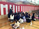 全校児童が体育館に集まり、卒業生を送る会を行いました。