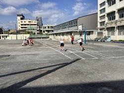 この日の1校時、5・6年生が50m走の計測を行いました。