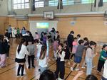プレゼントを渡した後、5年生からは全校でじゃんけん列車での交流を進めてくれました。