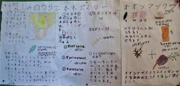 3年生の総合的な学習の時間に、学校の木について学びを深めてきました。図書室の資料やインターネットを使い、自分のお気に入りの木のひみつをたくさん調べました。調べたことをグループの友達と協力して、チラシやポスターにまとめました。
