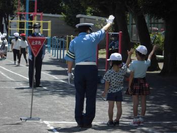 6月9日、1年生(登下校の安全な歩き方)と4年生(自転車の安全な乗り方)が交通安全教室をしました。鶴見警察交通課の皆様にご協力いただき、お手本を見せていただいたり、実際に歩いているところでご指導いただいたりしました。警察の方のお話を聞く場面では、熱中症予防のため子ども達を日陰に座らせるなど、ご配慮をいただきました。(上の写真は1年生の様子です。)