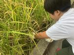 鳥よけネットを外し、鎌を使って稲刈りです。
