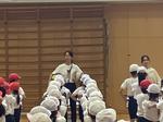 4/15(水)3年生は初めての学年集会を行い、学年全体で新たなスタートを切りました。学年集会では、3年生になると自分で考えて行動する場面が増えることなどの話があり、子どもたちは落ち着いた姿勢で耳を傾けていました。「挑戦してみたい」「できるようになりたい」といった前向きな表情も見られ、これから始まる一年への期待が感じられました。担任の先生方とともに、互いに支え合いながら、一人ひとりが力を伸ばしていける一年を目指していきます。体育着に着替えて学年集会に臨んだ、子どもたちは列を整え、左右を確認しながら前から順に静かに座ることができました。学年主任の先生からは、気持ちを整えること、列や行動を整えること、話を聞く姿勢を整えることの大切さについて話があり、立ったり座ったりする場面一つひとつで、相手の話をしっかり聞くことやメリハリ・けじめをつけることが丁寧に伝えられました。子どもたちは気持ちを切り替え、集中して集会に臨むことができていました。担任の先生方の自己紹介では、好きな給食の話題で盛り上がり、マーボー豆腐や揚げパン、また「好きな給食は全部です」といった声に、体育館には笑顔と歓声が広がりました。和やかな雰囲気の中で気持ちがほぐれた後、学年主任の先生から、3年生の学年テーマ「スリーピース」が発表されました。ピースサインの「ピース」には幸せという意味があり、3年生が3つのピースでたくさんの幸せにあふれた学年になってほしいという願いが込められています。どのような行動が幸せな学年につながるのかについては、各クラスの実行委員を中心に話し合っていくことも伝えられました。3年生は低学年から中学年へと成長していく学年です。集会では、自分のことは自分で責任をもって行うことの大切さについても話がありました。体育着や赤白帽子の準備、授業の準備などを、これからはおうちの人の力に頼るだけでなく、自分の力で行っていこうという中学年としての自覚が子どもたちの中に芽生えているようでした。全体の話を最後までしっかりと聞いた後は、レクリエーションの時間となり、○×クイズやドッジボールで思いきり体を動かしました。学年全体で楽しむ中で、仲間とのつながりを深める姿が多く見られました。これから始まる3年生の一年が、「スリーピース」の名の通り、幸せと笑顔にあふれた毎日になるよう、学年一同で取り組んでいきます。