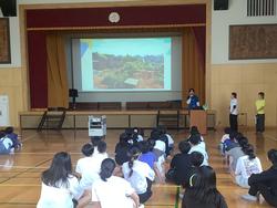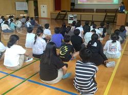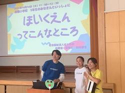 10/14(火)、5年1組・2組では、総合的な学習の時間の一環としてキャリア教育の授業を実施しました。今回は、地域の保育施設である鳩の森保育園からスタッフの皆さんをお招きし、保育士・栄養職員の視点から保育園の仕事についてお話をいただきました。保育士の方からは、保育園の一日の流れを画像を使ってわかりやすく説明していただきました。特に「遊び尽くすことの大切さ」や「仲間と共に遊ぶことで得られる学び」についてのお話は、子どもたちにとって新鮮で、深い気づきにつながりました。実際に保育園で行われている「じゃんけん列車」などの遊びを体験することで、遊びを通した学びの楽しさを実感することができました。また、栄養職員の方からは、保育園での食事に関する工夫や配慮についてお話をいただきました。0歳児から離乳食を食べること、小学生とは異なる栄養補給の必要性、食物アレルギーへの対応など、子どもたちが安心して生活できるように考えられた給食やおやつの工夫に、児童たちは驚きとともに興味深く耳を傾けていました。5年1組・2組では、前期に学校で育てたもち米を活用し、「食」について考えていく学習構想を立てています。今回のキャリア教育をきっかけに、保育園とのつながりを大切にしながら、食や職業についての学びをさらに深めていく予定です。一方、5年3組では、福祉施設との関わりをテーマに、総合的な学習の時間を進めています。それぞれのクラスが異なる視点から地域とつながり、主体的に学びを広げている姿が見られています。今後も、5年生の子どもたちが地域の方々との出会いを通して、自分たちの生活や将来について考えを深めていきたいと考えています。