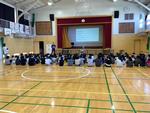 4/9(木)2年生の学年開きが行われました。一つ学年が上がり、少しお兄さん・お姉さんになった子どもたちは、新しい教室や仲間との出会いに、期待と緊張が入り混じった表情を見せながら集まっていました。学年開きでは、今年度2年生を担当する担任の先生をはじめ、学年に関わる先生方の紹介がありました。先生一人ひとりが、得意なことや好きなことを交えて自己紹介をすると、子どもたちは目を輝かせながら話を聞いていました。高い声を響かせた自己紹介や、好きな野球チームの話、畑で育てている家庭菜園の話など、先生方の個性あふれる紹介に、体育館は温かい雰囲気に包まれました。また、けん玉や縄跳びの披露もあり、自然と拍手や歓声が広がり、先生方との距離が一気に近づく時間となりました。続いて、こどもの国の遠足や音楽朝会など、これから一年間に行われる主な行事について確認をしました。行事の話を聞きながら、「楽しみだね」「早く行きたいな」と友達同士で声を掛け合う様子も見られ、2年生としての学校生活への期待が高まっていく様子が伝わってきました。