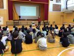 4/8(火)5年生は学年開きを行いました。体育館に集まった子どもたちは、落ち着いた雰囲気の中で、新しい学年のスタートを迎えました。学年開きでは、まず担任の先生や、5年生に関わる先生方の紹介がありました。先生方からは、フルートの演奏、リフティング、縄跳び、ピアノ演奏など、それぞれの得意なことが披露され、子どもたちは思いがけない先生方の一面に驚きながらも、歓声や拍手を送り、笑顔があふれるひとときとなりました。新しい先生方への親しみと、これから始まる一年への期待が一気に高まりました。その後、一年間の見通しを確認しました。音楽朝会や三浦宿泊体験学習、運動会の演技など、5年生として取り組む行事が紹介されると、子どもたちは真剣な表情で話を聞き、「今年はどんな一年になるのだろう」と期待を膨らませていました。学年開きを通して、子どもたちは仲間や先生とともに成長していく一年を、前向きな気持ちで思い描くことができました。5年生としての新しい挑戦が始まります。これからの活躍がとても楽しみです。