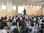 3年生がトイレ研究所の出前授業を受けました。自分の便がどのような状態なのかを「モデルのイラスト」を見ながら分類する記録を1週間とった子どもたちは「うんちはやわらかすぎても硬すぎてもだめなんだな。」「ちょうどいいうんちは、食事・運動・睡眠など健康あってのことなんだ。」と自分の健康に関心を高めていました。さらに講師の方の話を聞きながら、これからの健康について考える時間ともなりました。
