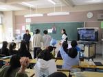 11月20日、6年生がオーストラリア姉妹校とTVシステムを利用して交流をしました。代表児童が、自分が好きな動物の特徴を英語で三つ程度伝えて「What am I ?」とクイズを出すと、相手は「鷹?」「ペンギン?」と思いついたことを日本語で返してくれました。お互い、日頃の授業での学びを生かしてやりとりを楽しみました。相手のことを思いやりながら丁寧に話したり、聞き取れなかったことやわからないことは質問しなおしたりする姿がすてきでした。