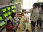 12月1日、1年生が保育園・幼稚園の年長さんを招待して「あきまつり」を開きました。生活科の時間に集めたどんぐりや落ち葉を利用して、思い思いにおもちゃをつくりお店屋さんを開きました。「ここのどんぐりコースにうまくどんぐりを転がすんだよ。」「やってみて。」笑顔で説明をしたり、応援したりする1年生の姿は「すてきなお兄さん・お姉さん」でした。人を喜ばせることの楽しさや喜びを感じていました。