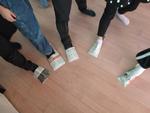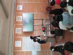 2組では「ペアクラスに教えて防災に備えてもらいたい」「2月にある地域防災訓練で発表して地域の人にも知ってもらいたい」という思いが膨らみ、18日に発表の第1弾として2年2組に伝えました。「防災時に使えるビニル袋ランタンは、懐中電灯に白色・透明・水色・黄色のビニル袋のどれを被せるとが一番明るく部屋を照らせるでしょうか。」とクイズ形式にして2年生が興味をもてるように投げかけたり、実験結果を写真や実物をつかって紹介したりしました。また、実際に新聞紙を配布して、一緒に折りながら新聞紙スリッパの作り方を伝えたりしました。相手意識・目的意識を明確にして子どもたちが主体的に活動する素晴らしい会となりました。