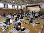 1月8日・9日に、3~6年生が学年ごとに書き初め大会を行いました。書き初めは、一年の抱負や希望、縁起の良い言葉など、一年の始まりにふさわしい言葉をその年の恵方に向かって書くという伝統的な正月行事が由来ですが、学校では書写の時間で学んできたことやつけた力を発揮して、3年生は「友だち」、4年生は「美しい空」、5年生は「世界の国」、6年生は「夢の実現」を書きました。「春の海」のBGMが流れるなか、子どもたちは手本を見ながら真剣に筆を運んでいました。「自分なりに納得できる作品になった。」「こっちは筆の入りがよくて、こっちははらいがうまくいった。どっちがいいかな。」…掲示する1枚を決め、各学年のフロアに掲示しました。