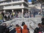 1月12日、地域の方々が主催でどんど焼きが行われました。高く上がる火柱と、竹が「パン パン」と大きな音を立てる様子に、今年の幸せと無病息災を祈りました。枝に付けた団子をじっくりと焼くと「ああ いいにおい。」「お団子がもっちりしている。」「煙で目が痛いよ。」など、子どもたちを中心に会話が弾み笑顔の輪ができました。地域行事を通して子どもたちの心が育まれていると感じました。地域の方々・保護者の方々・PTAの方々・消防団の方々・関係するすべての方々のお力あっての盛大などんど焼きでした。
