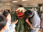 4年生が地域の「宮元はやし連」の方々をゲストティーチャーとしてお招きして、音楽の授業の発展としてお囃子に親しみました。子どもたちは初めに「はやし連」の方々の演奏を聴き、太鼓や笛、鐘の研ぎ澄まされた音に魅了されました。また、獅子舞やひょっとこの舞に引き込まれました。「迫力があるね。」「いつもお祭りで聴く音楽だね。」「獅子舞、かっこいい。」…その後の体験では、やってみたいことのコーナーへ行き、時間の限り親しみました。地域で続く尊い文化にふれた時間でもありました。ゲストティーチャーの中には本校の6年生の児童もいて、下級生である4年生に優しく教える姿が光っていました。※毎週土曜日の午後6時から宮元自治会館で活動をしているそうです。