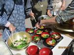 子どもたちはつきたてのお餅を食べながら、「ううん、おいしい。」「売っている切り餅とは違うねえ。」「初めて からみ餅を食べた、僕はきなこ餅よりからみ餅が好きになった。」などの感想を口にしていました。前日からもち米を水に浸したり、早朝から薪やかまどの準備をしてくださったりした地域の方々のお力あっての盛大な餅つきでした。
