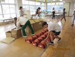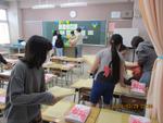4月6日に、6年生が入学式前日準備をしました。「わあ、こんなに小さい椅子と机だったんだね。」「5年前か。」と自分たちが1年生のころを思い出したり、「名前は大切だからきれいにシールをはってあげよう。」「掃除用具のほこりもとっておいてあげよう。」などこれからはじまる1年生の生活がスムーズにいくように考えたりしていました。さすが6年生です。また、会場入り口には、旧4年3組が総合的な学習の時間でフィールドワークをして見つけた「通行時に危険な場所」を示した「気を付けてねマップ」、校舎と会場の体育館をつなぐグリーンロードには地域の横溝様からいただき3年生が育てたビオラのプランタ、会場には各学年が作成した「おめでとう壁画」を飾りました。2年生から6年生は会場の広さの関係で入学式には参加できませんが、1年生を迎える優しい気持ちが各所で光っていました。全校児童で新一年生を迎えました。