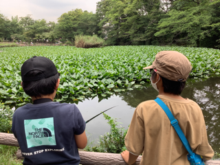 後日、吉野さんたちと一緒に許可をもらって菊名池公園にて生態調査をしました。