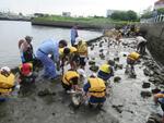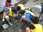 干潟での生き物観察と海の学習を行いました。カニやヤドカリ、エビを捕まえたり、小さな魚を発見した児童もいました。横浜の干潟の生態系について、肌で感じることができ、貴重な体験に心躍らせている様子でした。