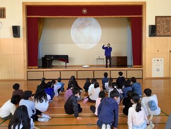 12月上旬に、はまぎん こども宇宙科学館より講師の方をお招きし、子どもたちに月についてお話をしていただきました。地球からの月の見え方や、月の環境など、初めて知るお話ばかりだったようで、興味津々にお話を聞いていました。お話の後、子どもたちが講師の方にたくさん質問をしており、宇宙への関心の高まりを感じました。