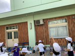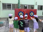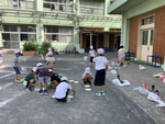 9月になっても暑い日が続いていましたが、水あそびを行うことができました。いろいろな形の空き容器に水を入れて飛ばしたり、シャボン玉液に浸けていろいろな大きさのシャボン玉を作ったりして、夏と楽しくすごしました。