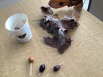 11月の岸根公園遠足で、ドングリや落ち葉をたくさん持ち帰ってきました。生活科の学習では、ドングリを使ったマラカスやこま、落ち葉を使ったゲームなど、自分の作りたいものを作って楽しく遊びました。遊んだ後は、友達の作品の良かったところを探したり伝え合ったりして、秋を楽しむことができました。
