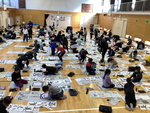 1月16日に、5組で「さつまいもパーティ」を行いました。畑で育てて収穫したさつまいもも加えてスイートポテトを作りました。当日は、高学年が皮をむいたり茹でたりして下ごしらえをし、他の学年は教室の飾り付けを担当しました。できあがった甘くておいしいスイートポテトを、みんなで笑顔で味わいました。自分たちで育てたさつまいもの味に、子どもたちは達成感と喜びを感じていました。
