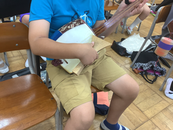 鶴見少年補導員やスクールサポーターの方に来ていただいて、防犯教室を行いました。マンガを使って、万引きについて考えました。自分だったらどう行動するかを問われると、真剣に考える姿がありました。また、友達に流されないように、正しい判断をしたいと振り返っていました。