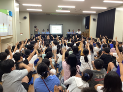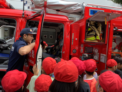 社会「火事からまちを守る」の学習で、消防士の方に「消防士の仕事のくふう」についてお話をいただきました。子ども達は、実際に消防車に乗ってみたり、使っている道具を持たせていただいたりしながら、一秒でも早く現場で活動できるように考えられていることに驚いている様子でした。また、煙体験を通して、火事が起きた時にどのような姿勢で避難すればよいかについても、考えることができました。
