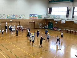 「1回ボールをキャッチできる」タイミングを図ったり、どこに動いたらボールがつながっていくか考えたりするなど、声をかけ合って、楽しく学習することができました。