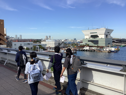 山下公園で昼食をとり、赤レンガ倉庫までグループごとにウォークラリーをしました。開港に関係する建物や記念碑などを見て、当時の様子を想像できたようです。
