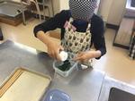 初めての家庭科では、調理実習をしました。ガスコンロや包丁の使い方を学び、青菜でおひたしを作りました。
