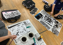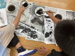 墨と水でできる色や、筆づかいから生まれる形から想像を広げて、紙の上に広がる世界を楽しむ学習です。