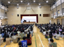 10月14日(火)に、前期と後期の区切りを迎えました。全校児童が体育館に集まり、校長先生の話を聞いたり、代表児童が前期の振り返りと後期のめあてについて話しました。最後にみんなで校歌を歌い、後期のスタートを気持ちよく切ることが出来ました。