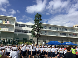 運動会に向けて、応援集会を行いました。赤組、白組ともに、応援団を筆頭に力強い歌声や掛け声を校庭に響かせました。運動会まであと少し。全力を出し切れるよう、かっこいい姿をお見せできるよう、残りの運動会練習も、頑張っていきます。
