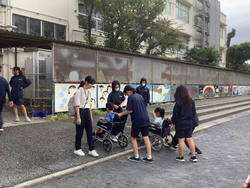 9月27日(土)、総合防災訓練が行われました。実際に災害が起きて学校に避難したときに、どのように過ごすのか、体験を通して学びました。各教室では、動画を見て「地震が起きたら机の下にもぐって頭を守る。」「塀が崩れるかもしれないから、塀から離れるようにする。」など、災害が起きたときに自分の身を守るためにできることを考えました。