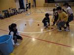 かごに球を入れるゲームで、みんなが同じ距離で投げるにはどのような形にすればいいのか考えました。
