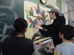 5年3組の総合的な学習の時間の一環で、横浜出身のペインター JUNK-Rさんにご来校いただきました。