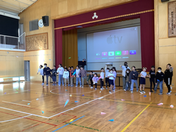 5組のことを知ってもらって仲を深めるために、高学年で話し合い、『○×ゲーム』と『紙飛行機大会』の準備を進めてきました。