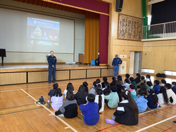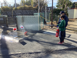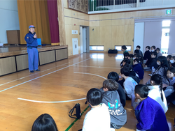2月4日(水)に旭消防署の方々と地域の消防団の方に来ていただいて、お話を聞いたり、体験活動をしたりしました。