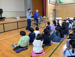 4年生は、自転車を安全に乗るためのきまりや、自転車の点検のしかたについて教えていただきました。あいにくの天気で、体育館での実施になりましたが、一人ひとりが自分の歩き方や自転車の乗り方について振り返る、貴重な時間になりました。